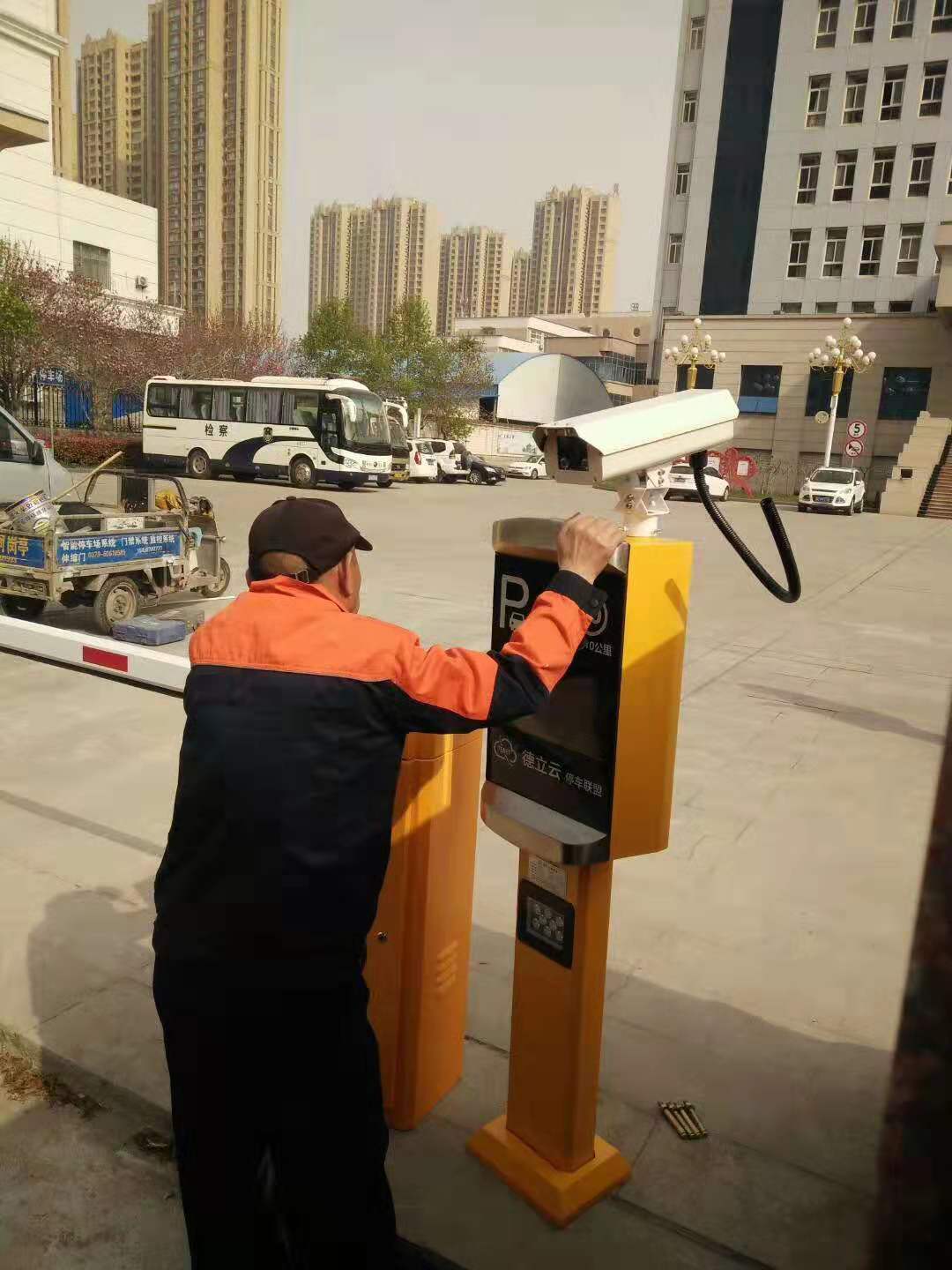洛阳检察院工人安装车辆识别系统